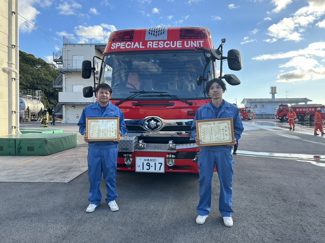 昨年11月に会社近くで火災があり、初期消火活動にて延焼拡大を防いだ協力に対する功労表彰と