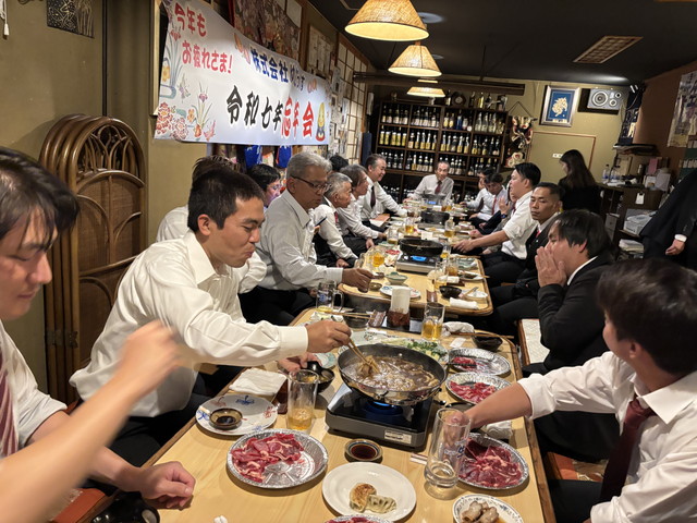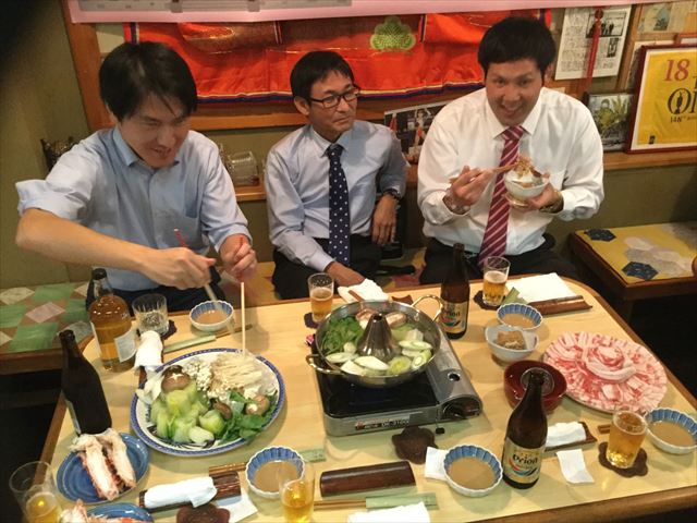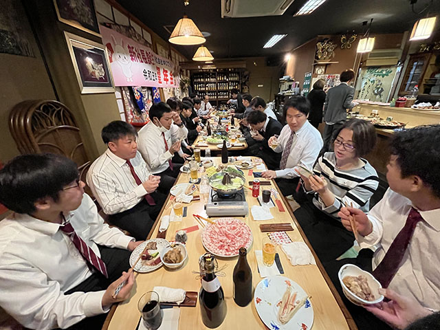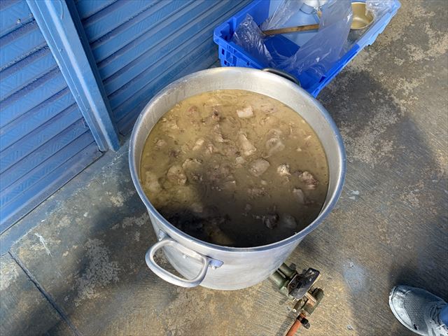 今回は社内でヒージャー汁、牛汁、オードブルで慰労会。