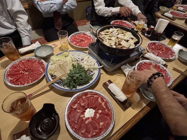 今回はすき焼き♪ 他にもたくさんの料理があり、たらふくいただきました。