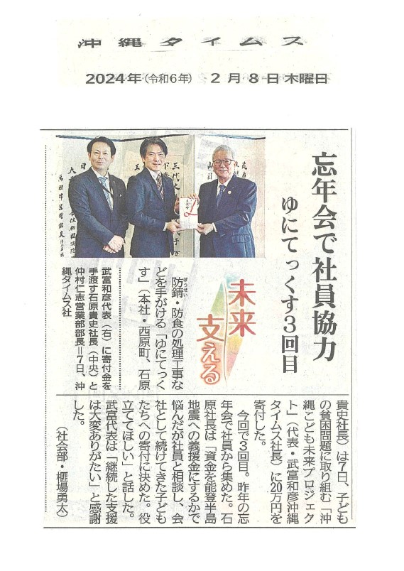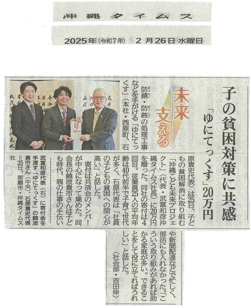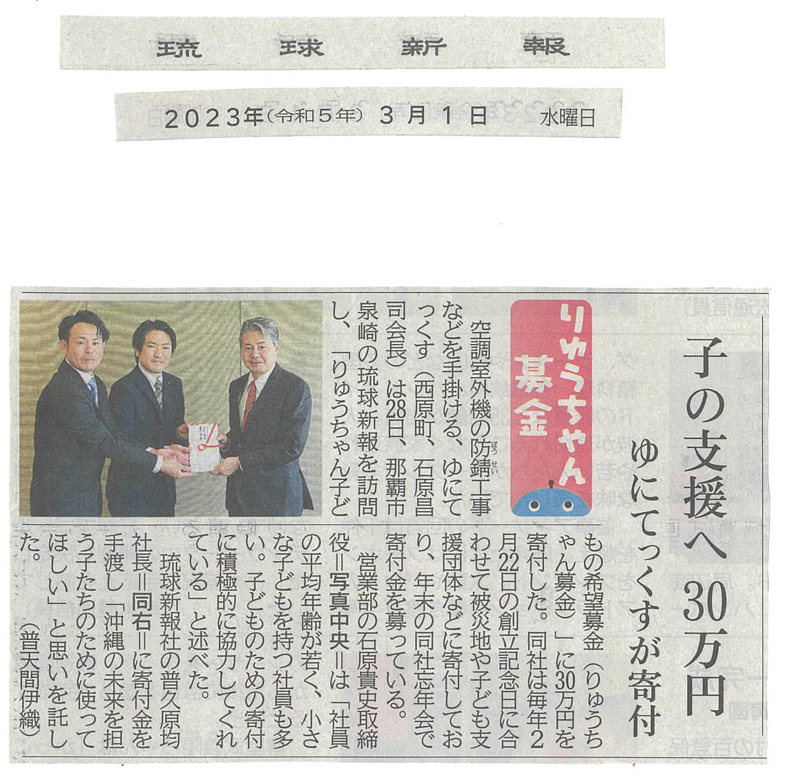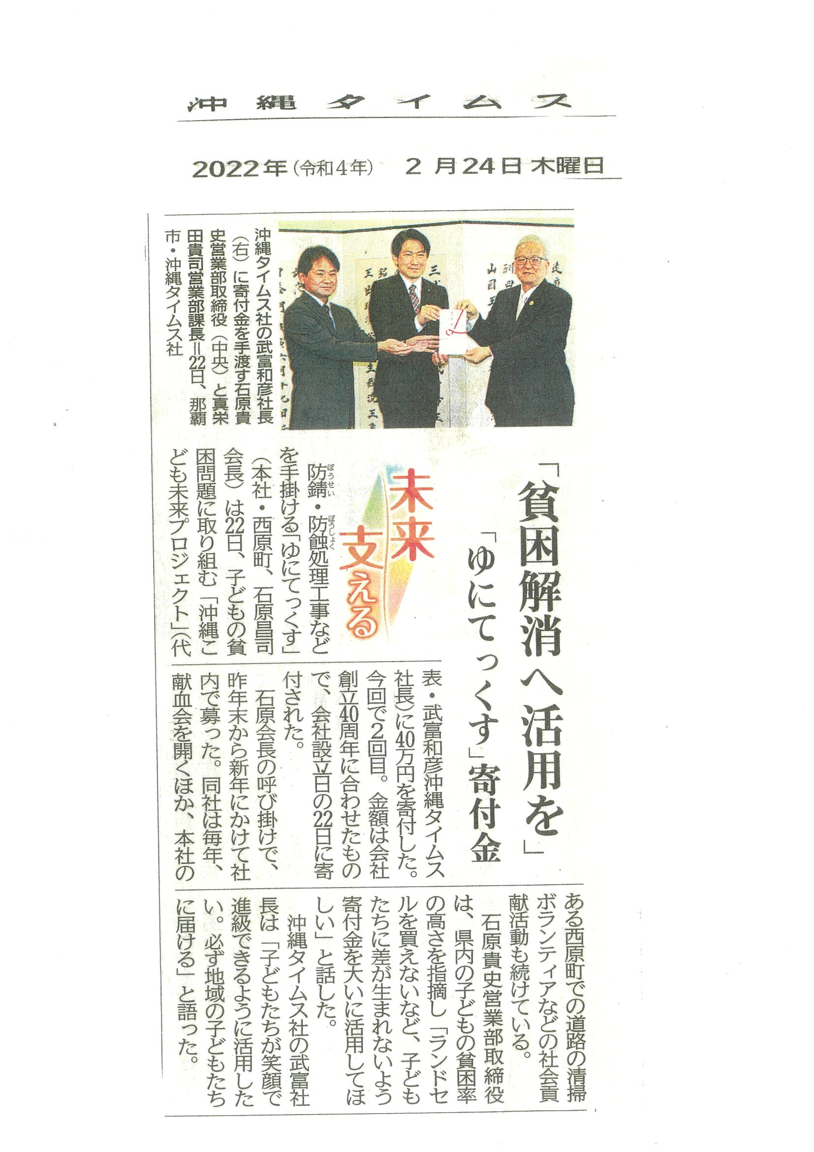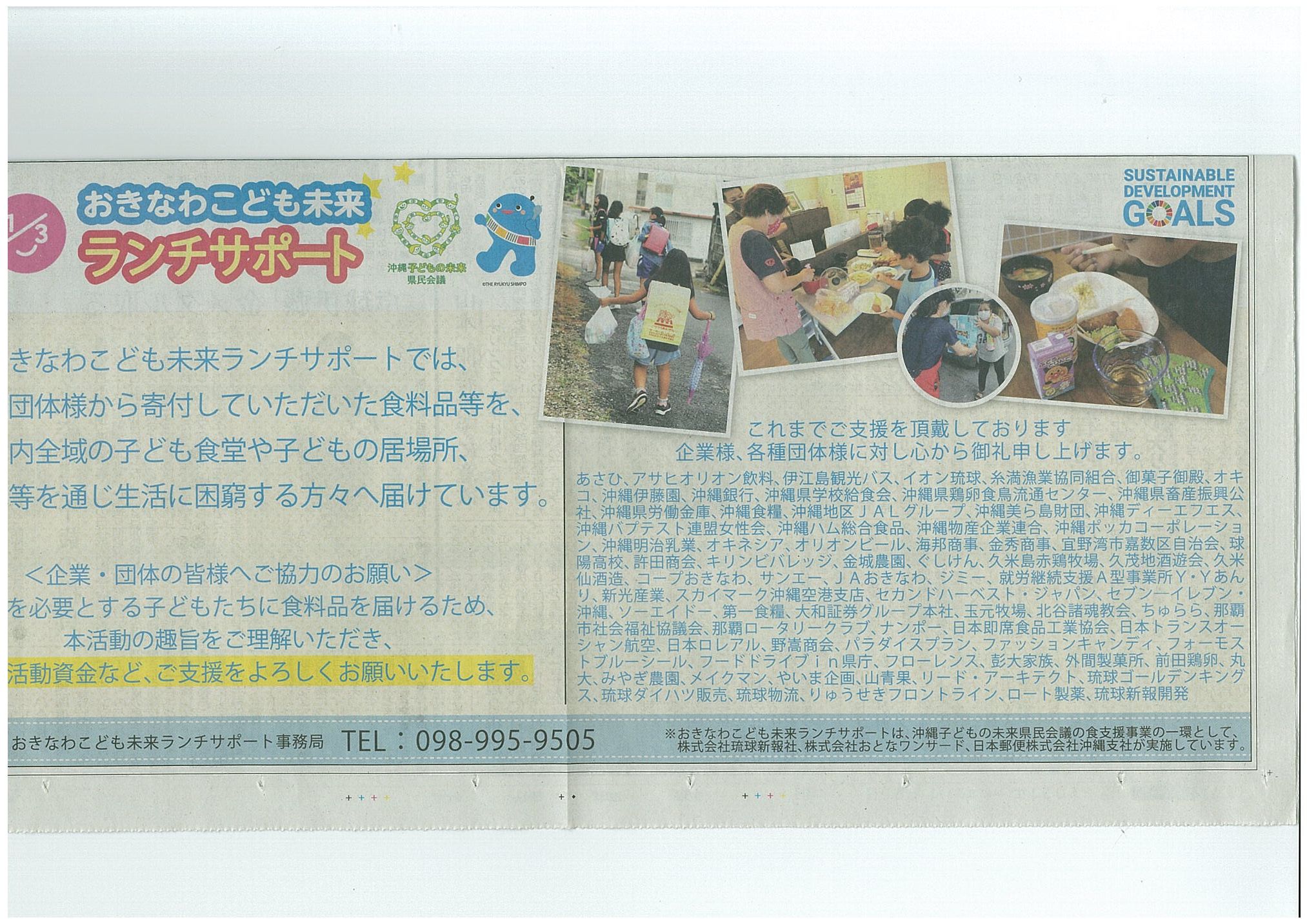 今回は、おきなわこども未来ランチサポートへ寄付しました。