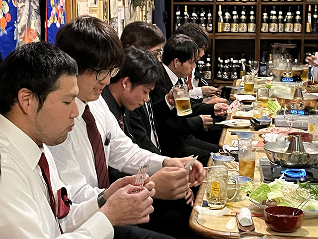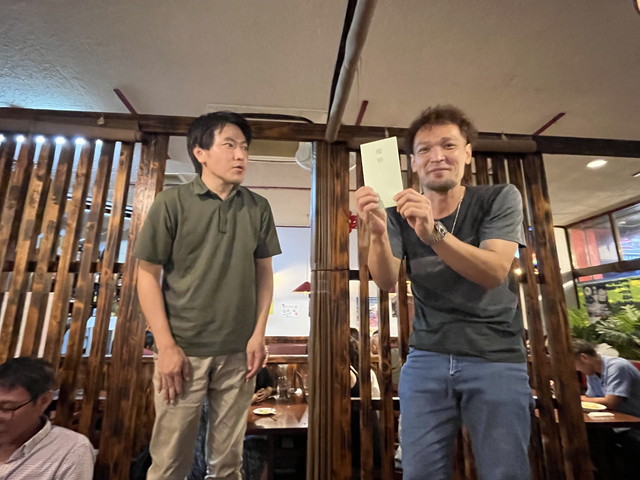 24日(金)にホテルロイヤルオリオン那覇で祝賀会を開き、飲んで食べて歌って楽しい時間を過ごしました。