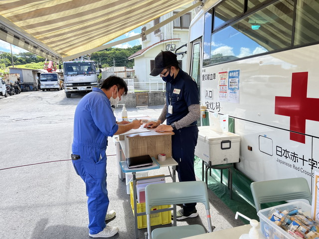 暑い中、取引業者の方、近隣住民の方にも献血にご協力いただきました。